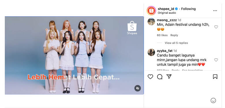 Melalui video yang di unggah di akun Instagram Shopee Indonesia pada 27 Agustus lalu, seluruh member menyanyikan lirik dalam bahasa Indonesia dengan penuh ekspresi ceria dan pengucapan yang fasih.